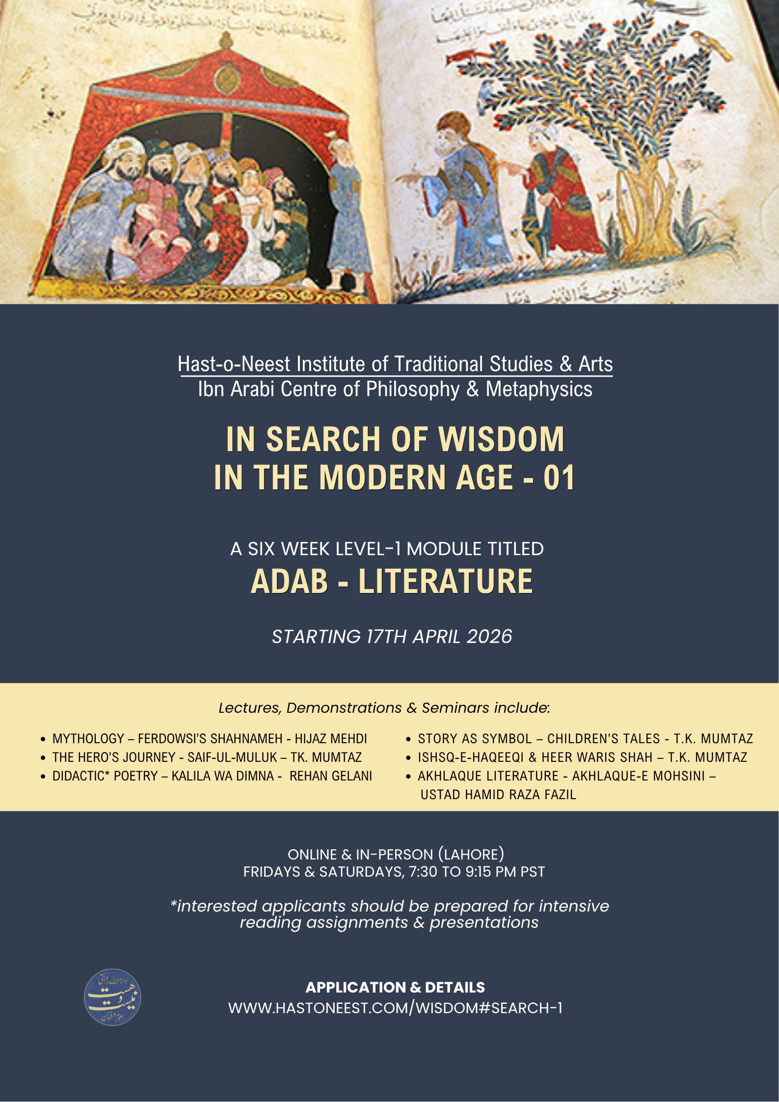 1) Applicants should be fluent in Urdu language, and (2) should be prepared to put in at least 2-3 hours of reading time prior to each session.