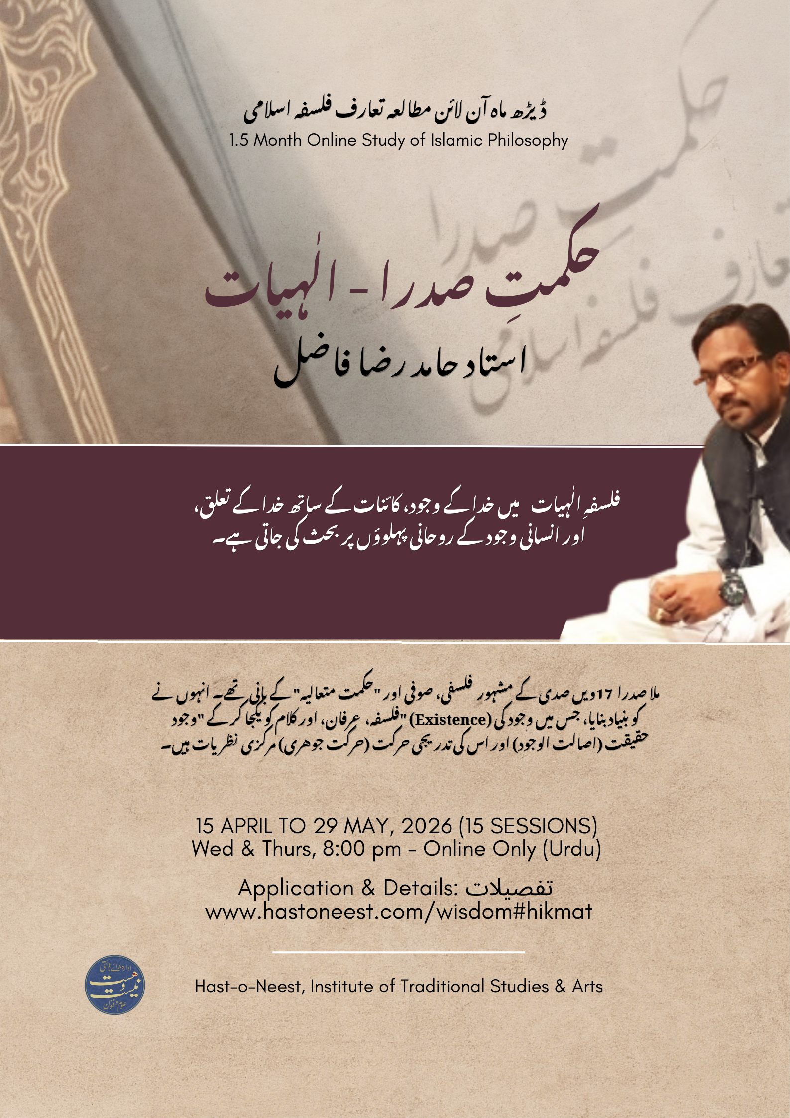A two part program on the study of Islamic Philosophy based on the book Hikmat e Sadra - An Introduction to Islamic Philosophy by Ustad Hamid Reza Fazil